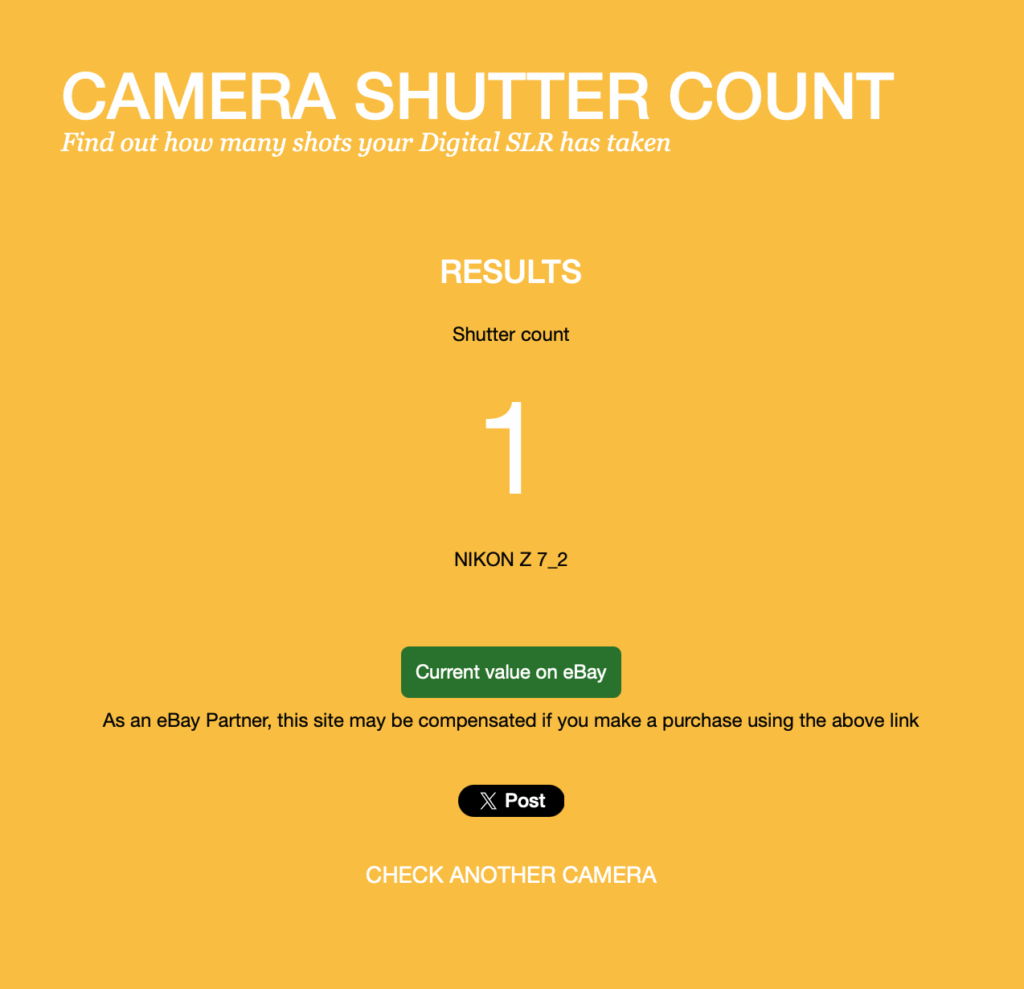 Just for fun, I checked the shutter count with this first image…(This is the sequential file number recorded into the EXIF information of each image file, which cannot be modified, so effectively shows the actual shutter count of the camera)